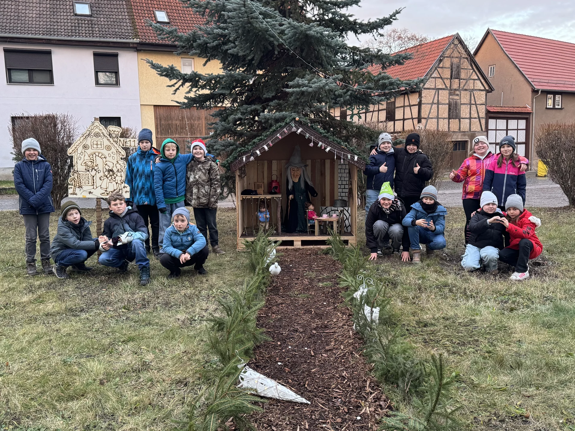 Im Anschluss machte sich die Klasse 4b auf den Weg zu einem Rundgang durch Udestedt. Dabei konnten die Kinder die liebevoll gestalteten Märchenbilder bestaunen, die es überall zu entdecken gab und für große Begeisterung sorgten.