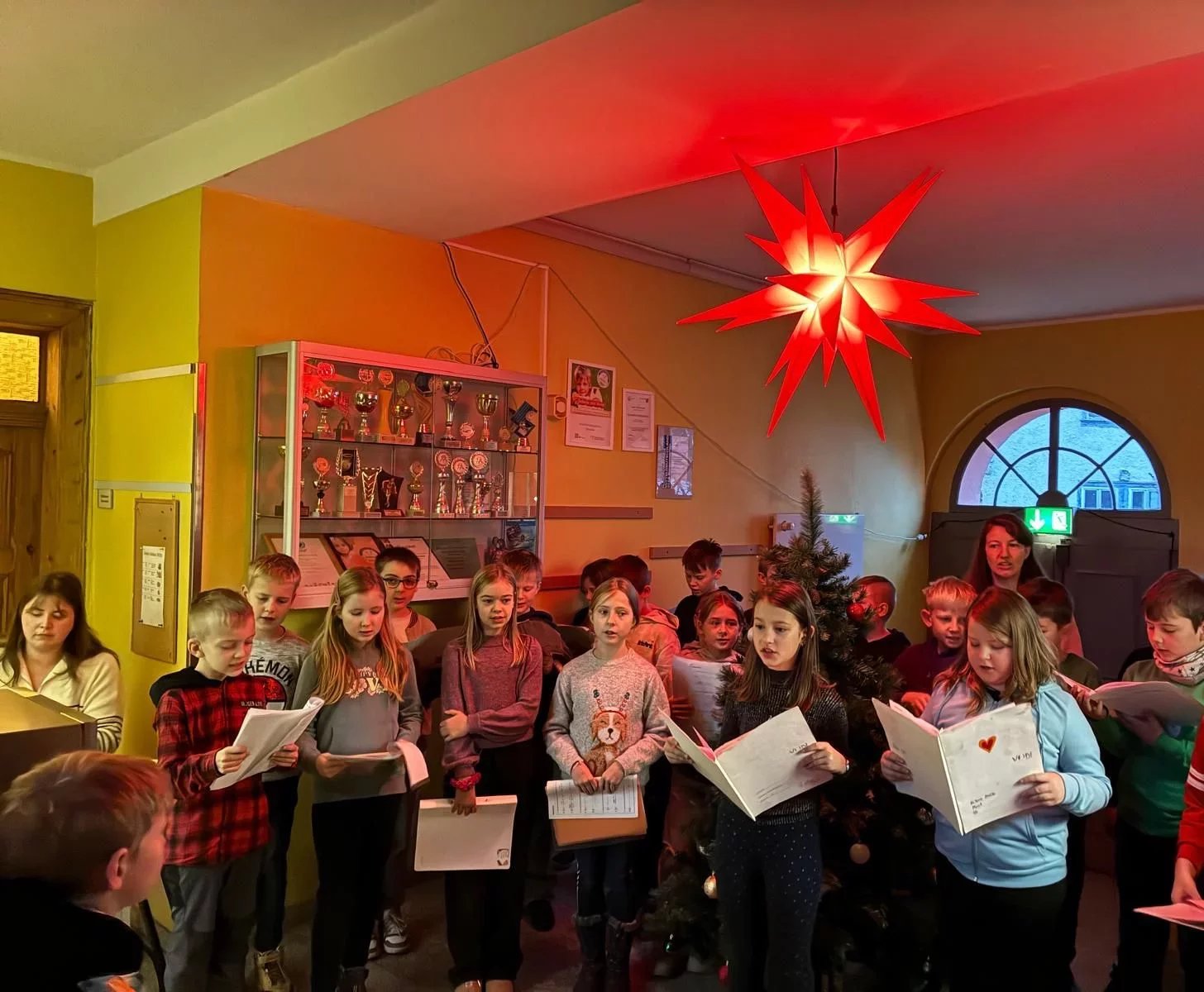 In der Adventszeit ist an unserer Grundschule Udestedt eine wunderbare neue Tradition entstanden, die bereits jetzt aus dem Schulleben nicht mehr wegzudenken ist. Jeden Freitag in der Adventszeit trifft sich die gesamte Schulgemeinschaft im Foyer, um gemeinsam Weihnachtslieder zu singen und die vorweihnachtliche Zeit miteinander zu genießen.
