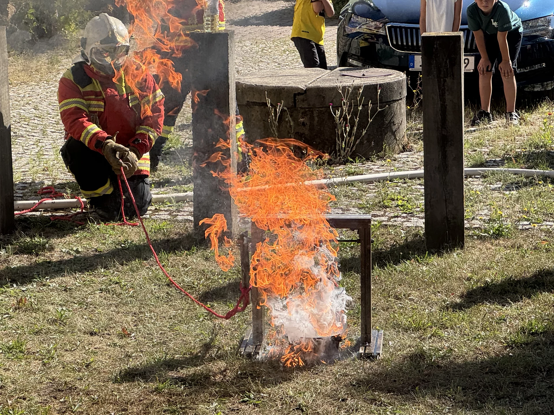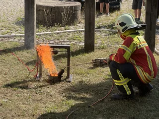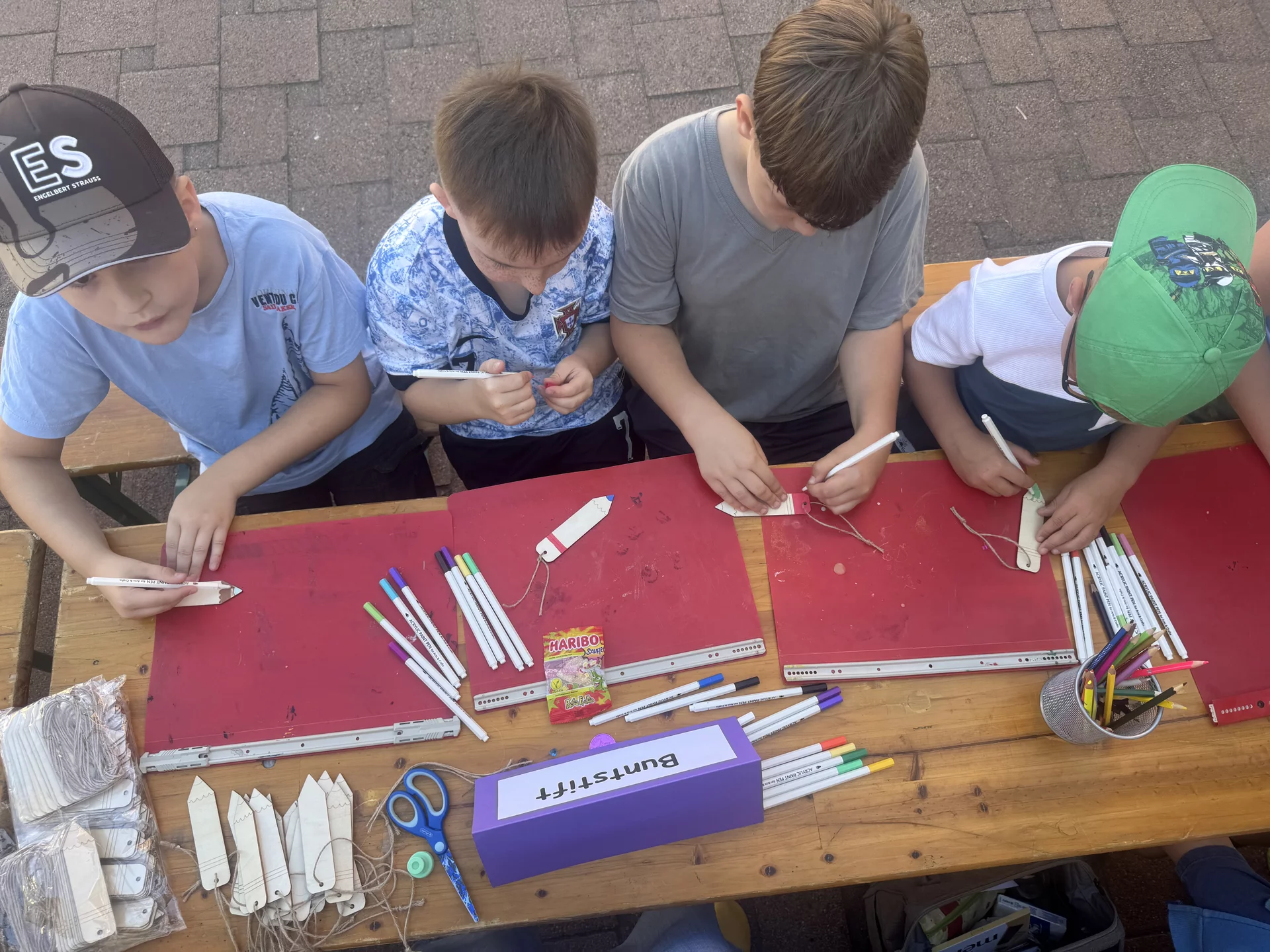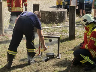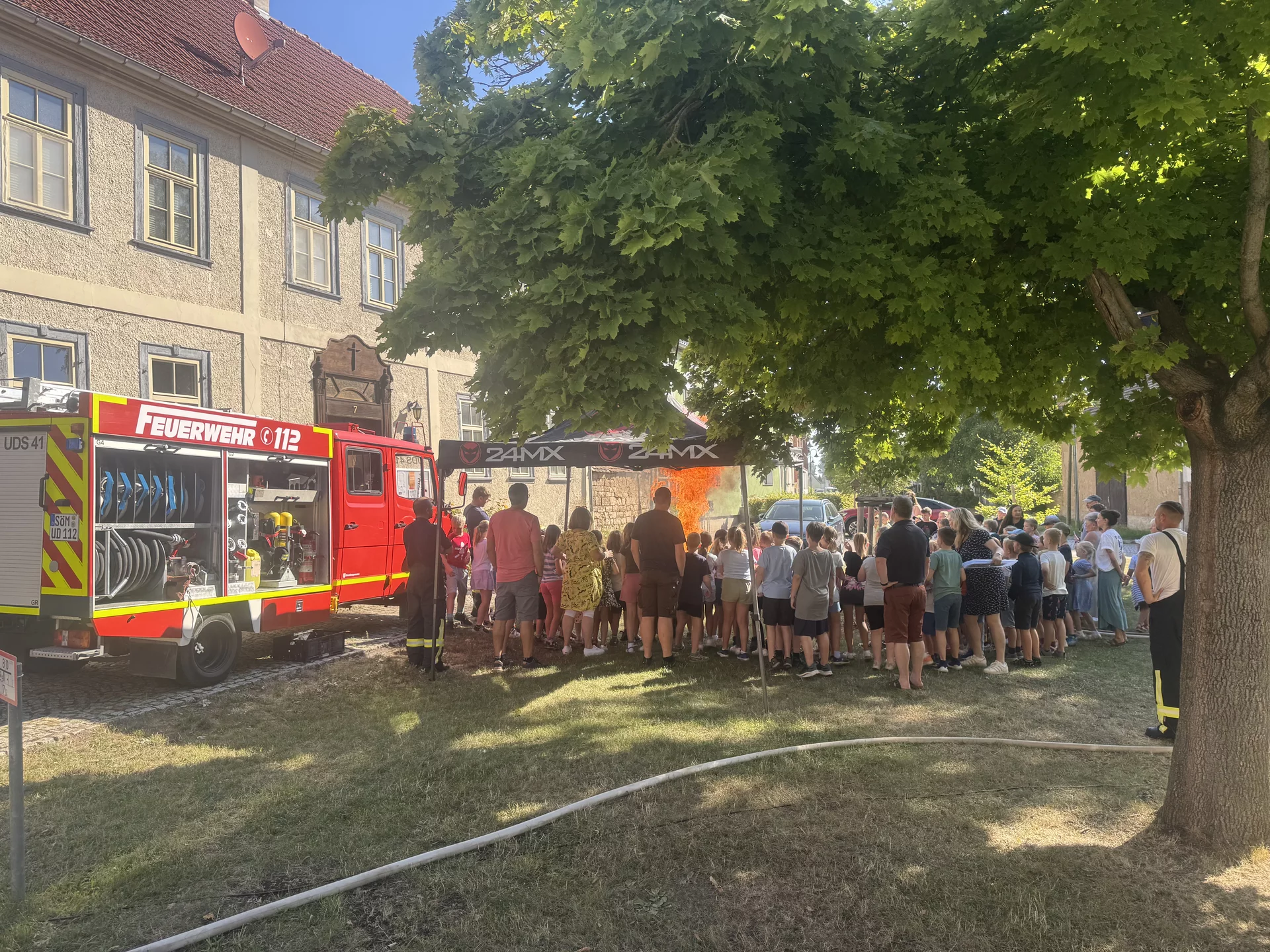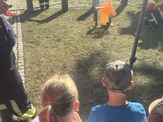 Nach der Frühstückspause ging es für alle vor die Schule: Die Feuerwehr Udestedt zeigte den Kindern, wie Brände entstehen und wie sie gelöscht werden, was wichtig ist und wie man sich vor Gefahren bei Feuer schützt. Danach begann der bunte Stationenlauf auf dem Schulgelände, dem Hortgebäude, der Turnhalle und vor dem Schulhaus. Mit dabei waren unter anderem Kinderschminken, Glitzertattoos, Dosenwerfen, Eierlauf, Lesezeichen gestalten, Kratzbilder herstellen, Wackelclown basteln, Hüpfburg, Kreidebilder, Glücksrad – und vieles mehr.