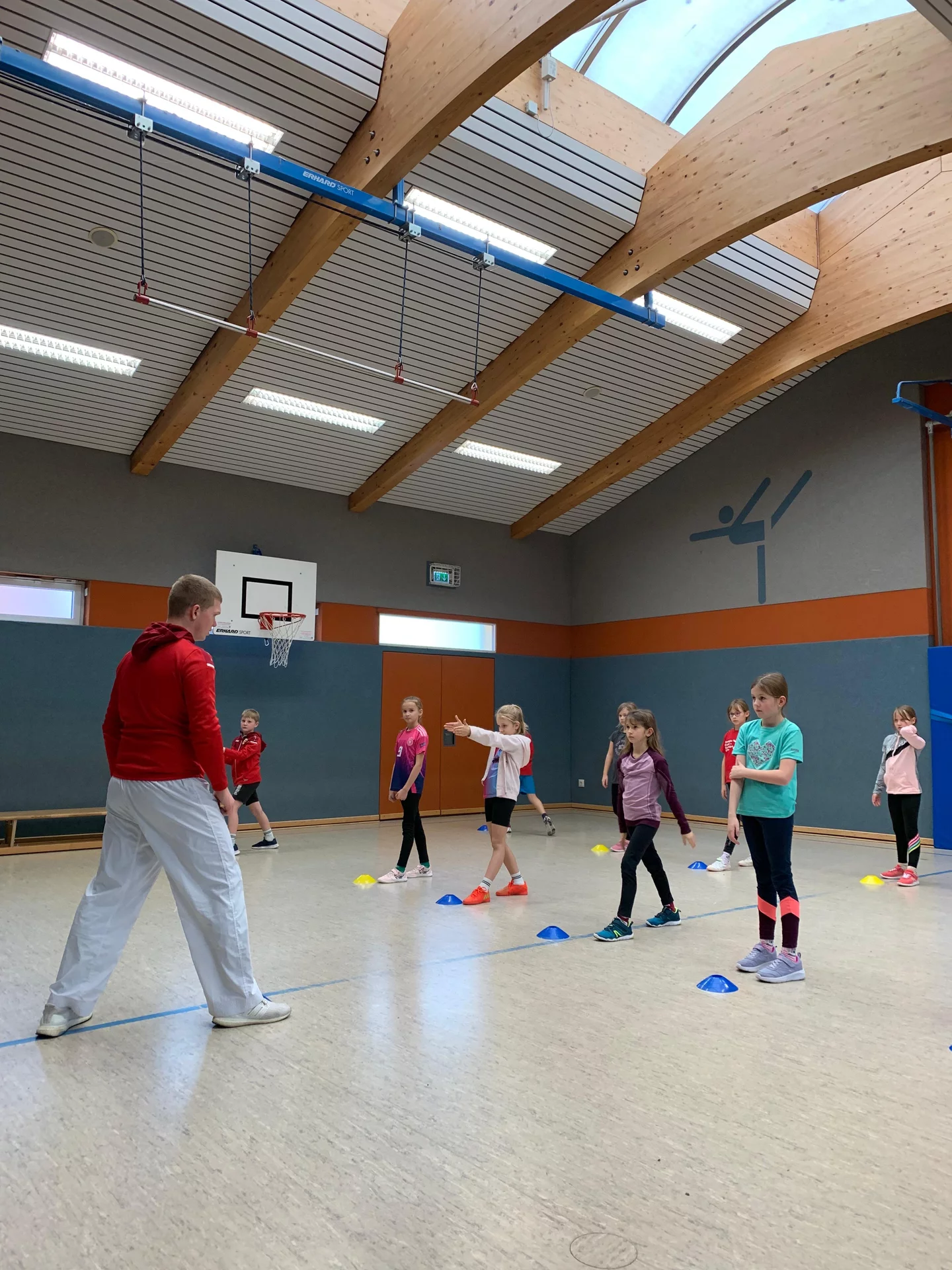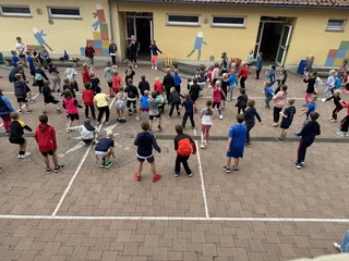 Die Kinder hatten außerdem die Gelegenheit, ihre zukünftige Klassenlehrerin, Frau Reichenbach, kennenzulernen. Der Besuch auf dem Schulhof während der Hofpause sowie in der Sporthalle mit einigen Bewegungsspielen war für alle sehr schön und hat den Kindern viel Freude bereitet und hoffentlich die Vorfreude auf das erste Schuljahr geweckt.