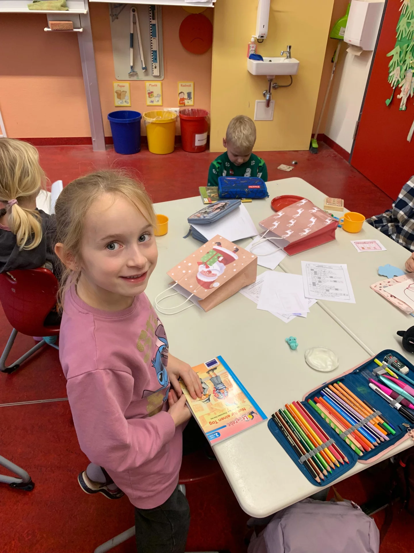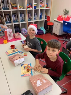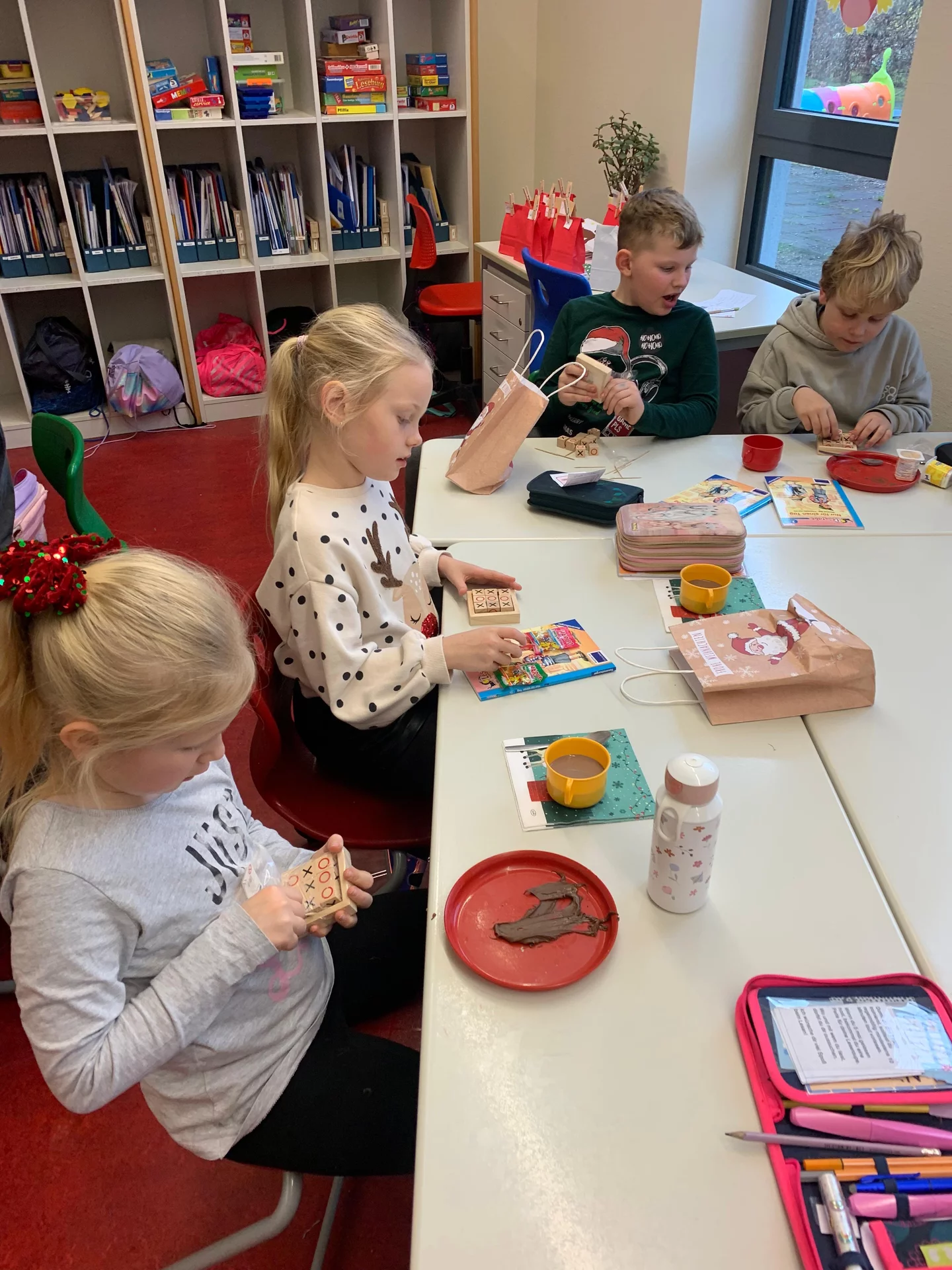 Ein weiteres Highlight war das kleine Geschenk, das jedes Kind erhielt. Dabei lag ein wenig Wehmut in der Luft, denn es war die letzte gemeinsame Weihnachtsfeier der Klasse 4b. Gleichzeitig überwog jedoch die Freude, denn alle blicken mit Zuversicht und Freude auf die letzten Monate ihrer gemeinsamen Grundschulzeit.