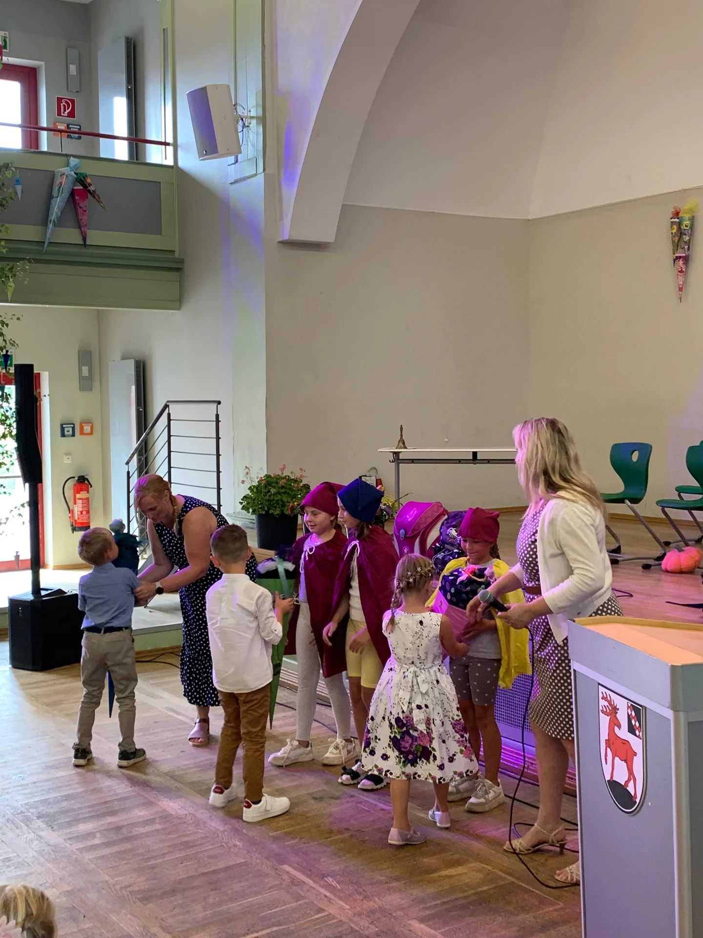 Danach kam der Moment, auf den die Erstklässler schon sehnsüchtig gewartet hatten: Die Übergabe der Zuckertüten. Auch in diesem Schuljahr wurden die Zuckertüten von den Zuckertütenwichtel überreicht.