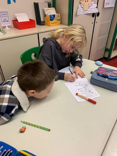 19.03.25 Englischunterricht heute anders: Hier sind die Schüler der Klasse 4a einmal Lehrer und bringen den Kindern der 3a neue englische Osterwörter und eine Darstellung dieser bei.