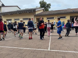 Nach der Erwärmung wurden die Kinder nach Klassen und Geschlecht eingeteilt, um die verschiedenen Disziplinen zu absolvieren. Unterstützt wurden die Schüler dabei von zahlreichen Eltern, die tatkräftig mit anpackten und das Sportfest erst möglich machten. Ihr Einsatz trug maßgeblich dazu bei, dass der Tag reibungslos verlief und alle Kinder die Gelegenheit hatten, ihr Können zu zeigen.