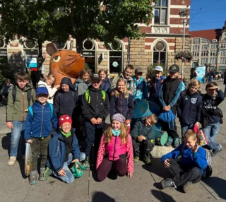 Am Montag, den 26. Mai 2025, erlebte die Klasse 3b einen spannenden Wandertag in den Kika Filmstudios in Erfurt. Der Tag begann mit einem Besuch der beeindruckenden Filmkulisse vom Baumhaus aus dem Sandmännchen. Die Kinder erhielten vielfältiges Hintergrundwissen rund um den Filmdreh, lernten die Abläufe hinter den Kulissen kennen und erfuhren, wie Filme vertont werden und welche Aufgaben der Regisseur hatte. Anschließend ging es zu den Maskenbildnern, wo die Kinder sahen, wie sich die Schauspieler passend für die Dreharbeiten umzogen und was beim Filmdreh zu beachten ist. Ein weiteres Highlight war der Keller, in dem die Kinder die Requisiten bestaunten und die vielfältigen Gegenstände erkundeten. Während des gesamten Tages wurde viel erklärt und auf die Fragen der Kinder eingegangen, um den Tag so lehrreich und spannend wie möglich zu gestalten. Nach einem Mittagessen konnten die Kinder ihrer Kreativität freien Lauf lassen: In kleinen Gruppen erstellten sie einen eigenen Trickfilm, den sie eigenständig aufnahmen. Dabei entstanden vielfältige Ideen, und alle hatten großen Spaß beim kreativen Arbeiten.