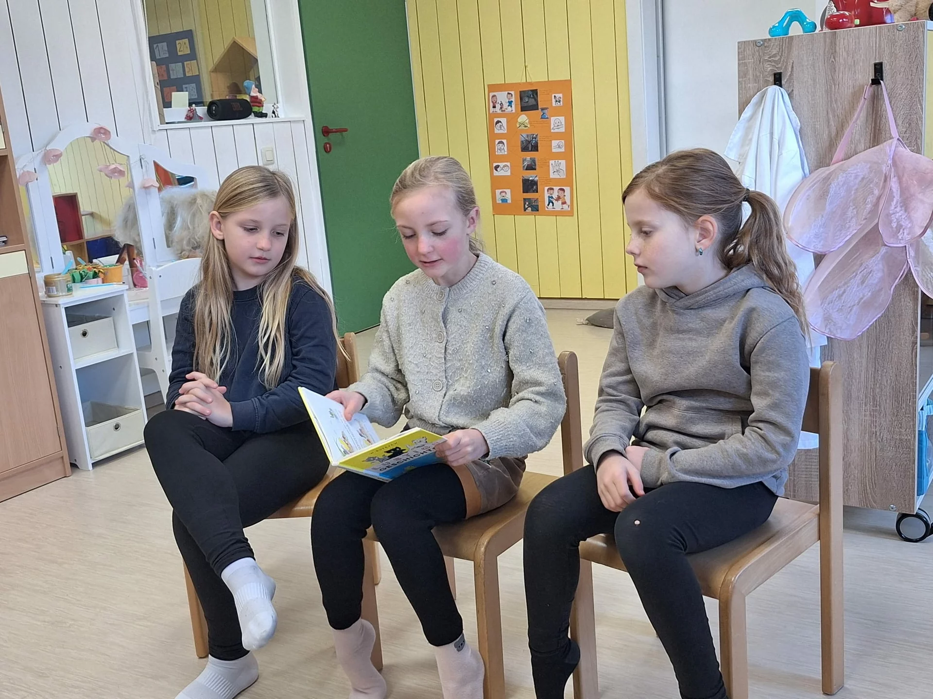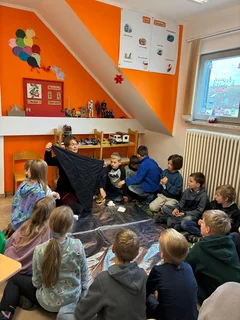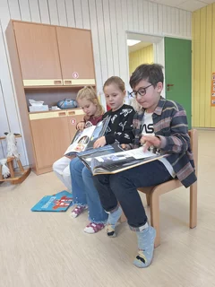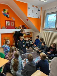 Der Anlass ist die Vorlesewoche bzw. der Bundesweite Vorlesetag, der jedes Jahr die Bedeutung des Vorlesens hervorhebt. Für die Drittklässler ist es eine schöne Erfahrung, selbst einmal Vorleser zu sein, während die Kindergartenkinder gespannt den Geschichten lauschen.