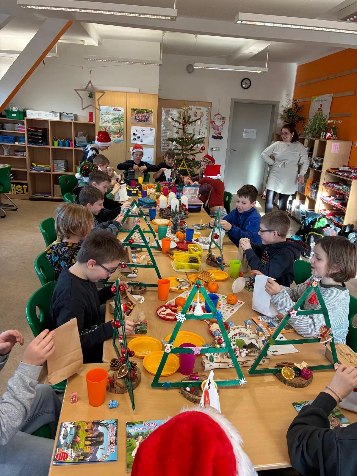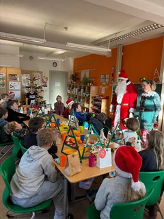 🎄Weihnachtswerkstatt und Weihnachtsfeier in der ersten Klasse🎨 ✂️: Heute fand unsere alljährliche Weihnachtswerkstatt in der 1. Klasse statt. mit großer Freude und viel Kreativität bastelten die Kinder an verschiedenen Stationen liebevolle Weihnachtswerke, die sie stolz mit nach Hause nehmen konnten 🎁. Im Anschluss daran feierten wir gemeinsam eine kleine Weihnachtsfeier. Es wurde viel gelacht, gesungen und die festliche Stimmung genossen 🎶✨. Für das leibliche Wohl war ebenfalls bestens gesorgt: Plätzchen, Lebkuchen und weitere weihnachtliche Leckereien durften natürlich nicht fehlen🍪. Als besondere Überraschung erhielten die Kinder ein personalisiertes Leselineal mit ihrem Namen, einen Weihnachtsmann🎅, ein Stickeralbum, einen Brief vom Weihnachtsmann sowie einen Gutschein für das 🎭 Puppentheater. Wir blicken auf einen fröhlichen und rundum weihnachtlichen Tag zurück, der allen lange in Erinnerung bleiben wird⭐🌲.