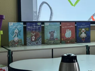 Zum Abschluss gab es viel Applaus für die Autorin und Illustratorin. Als kleine Überraschung bekam jedes Kind kostenlos Postkarten und Sticker mit Motiven aus dem Buch geschenkt – ein schönes Andenken an einen inspirierenden Vormittag.