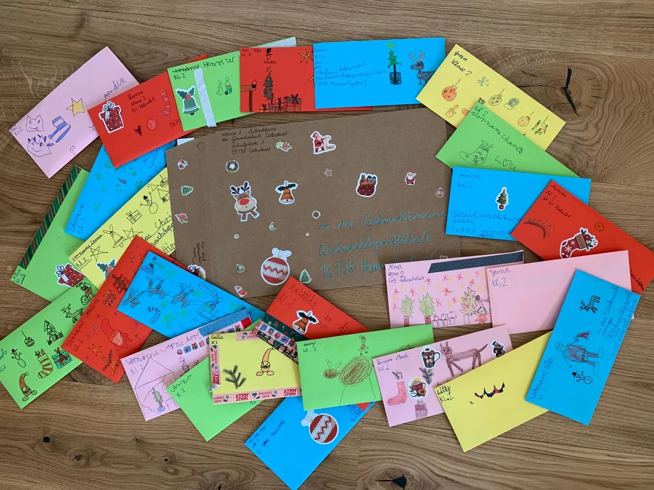 Die Eulenklasse (Klasse 2) hat in diesem Jahr fleißig Wunschzettel geschrieben und an den Weihnachtsmann geschickt. Am 13. November 2025 reist der Weihnachtsmann vom Nordpol in den Weihnachtsort Himmelpfort, um dort die Kinderbriefe aus aller Welt zu beantworten. Jetzt hoffen wir gespannt auf die Antwort.