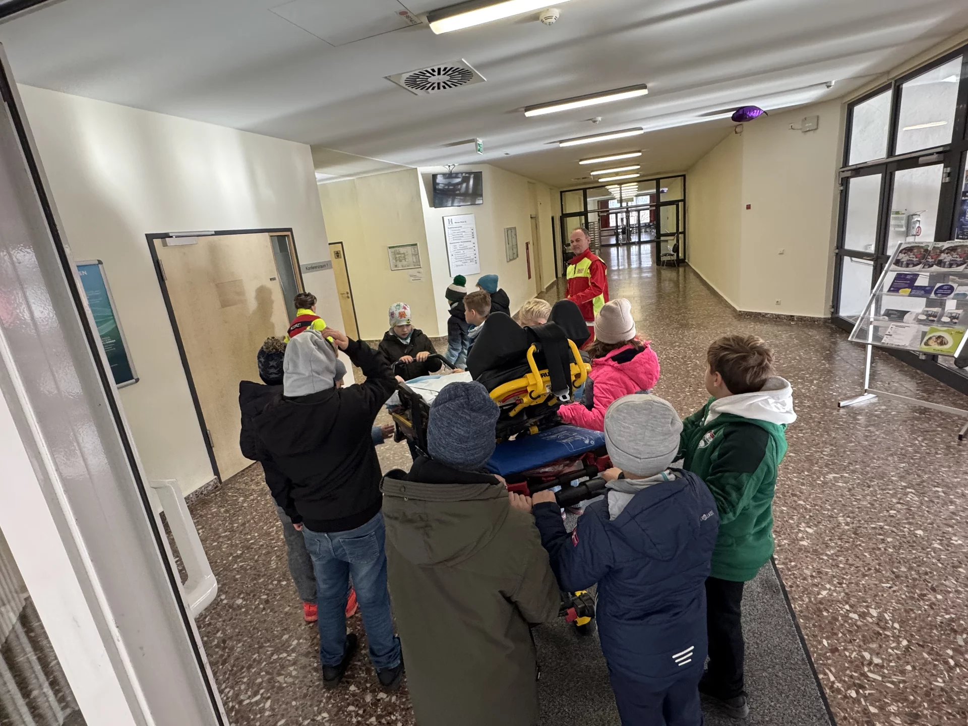 Am 18. November 2025 erlebte die Klasse 4b einen ganz besonderen und spannenden Ausflug nach Erfurt. Gleich am Morgen stand der Besuch des Helios Klinikums auf dem Programm. Dort nahmen die Schülerinnen und Schüler im Rahmen der Kinderuni am Lehrgang „Tatütata – der Rettungswagen ist da“ teil.