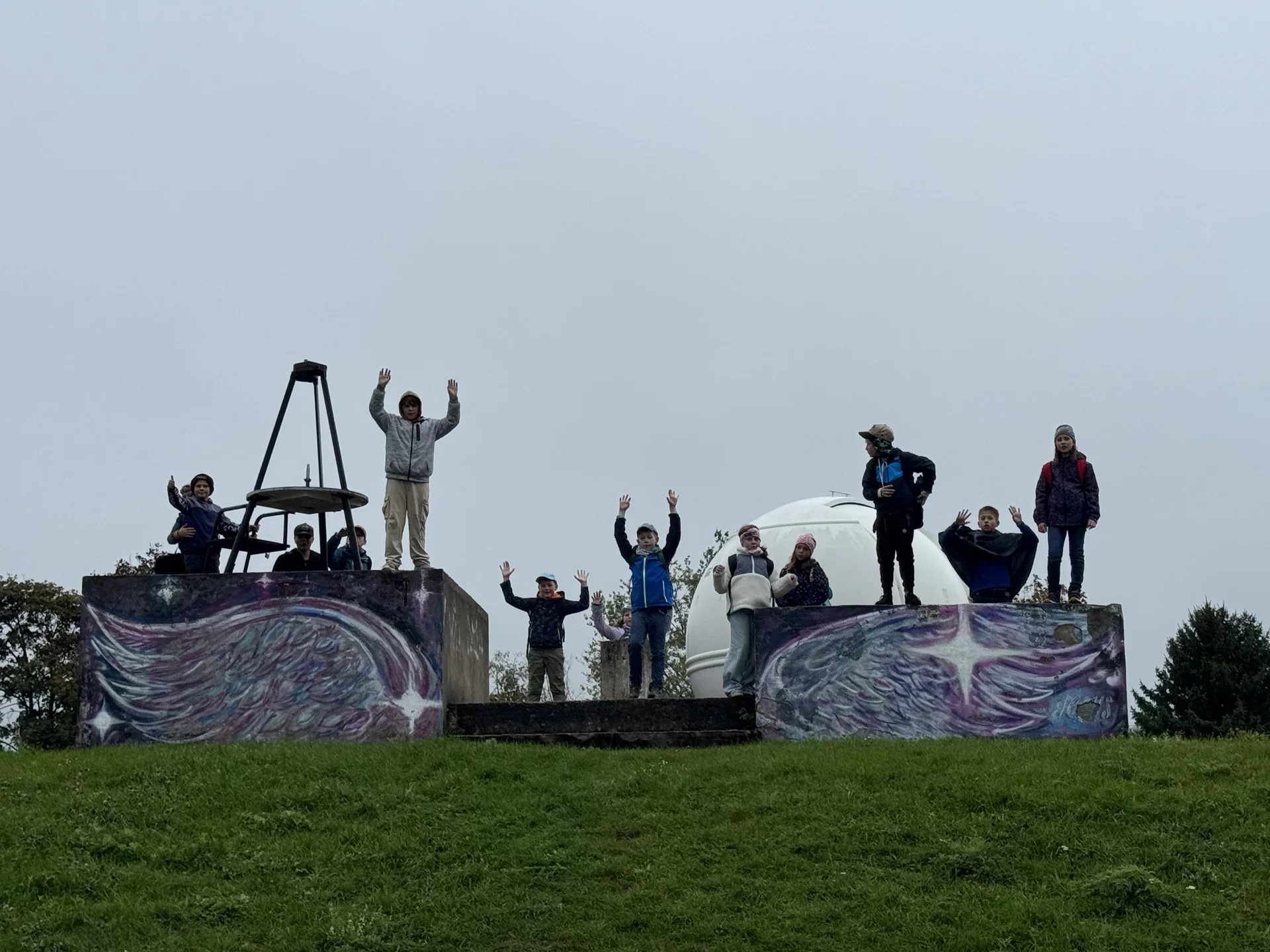des Schulplanetariums, das mit seinem aufblasbaren Kuppelzelt,
