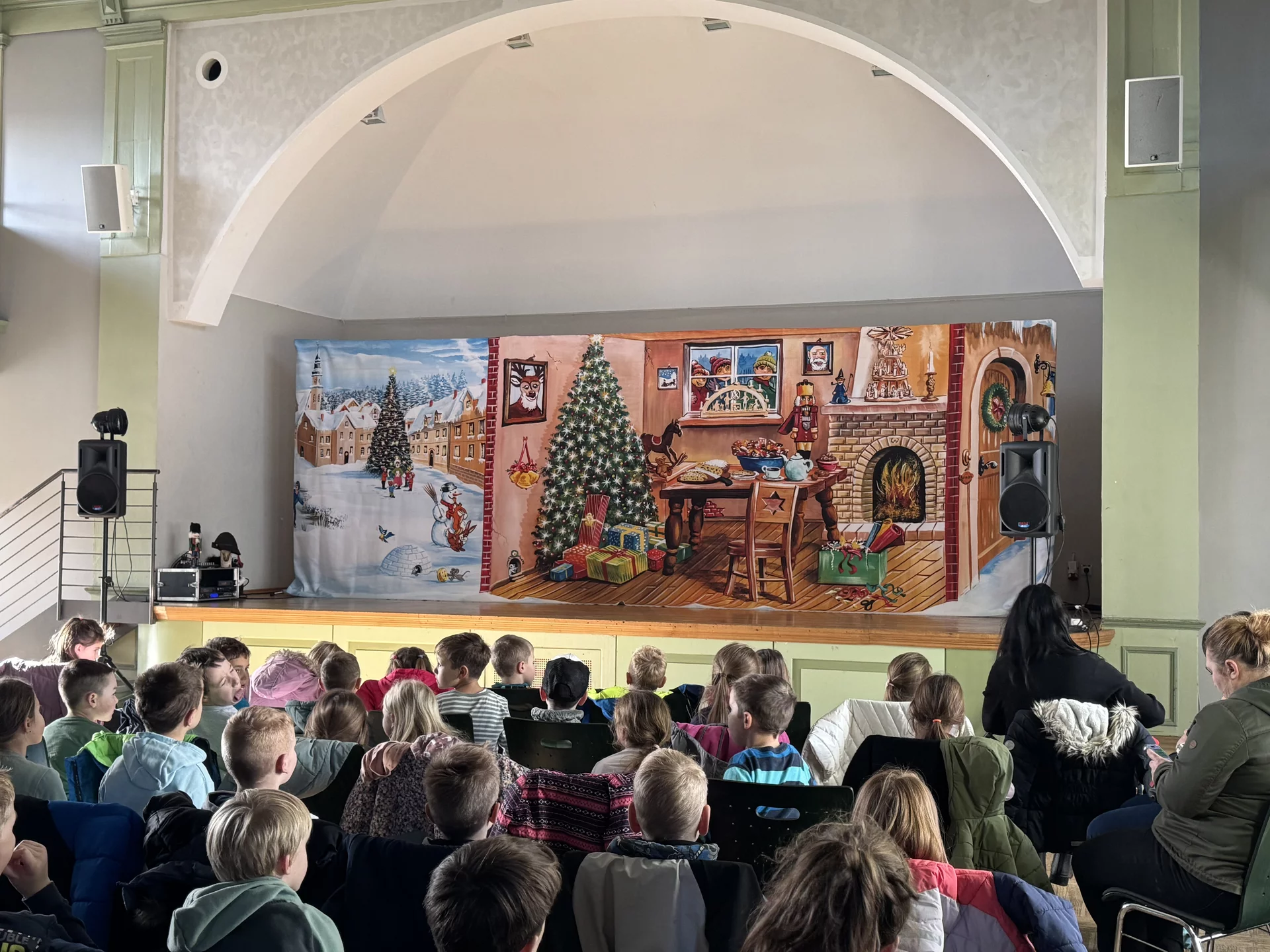 Am 28. November 2025 besuchte die Grundschule Udestedt den Weimarischen Hof, um gemeinsam das Kindermusiktheater „Weihnachtszauber“ von Ellen Heimat zu erleben. Auch die Vorschulkinder der umliegenden Kindergärten waren mit ihren Erzieherinnen eingeladen und nahmen gespannt an der Veranstaltung teil.