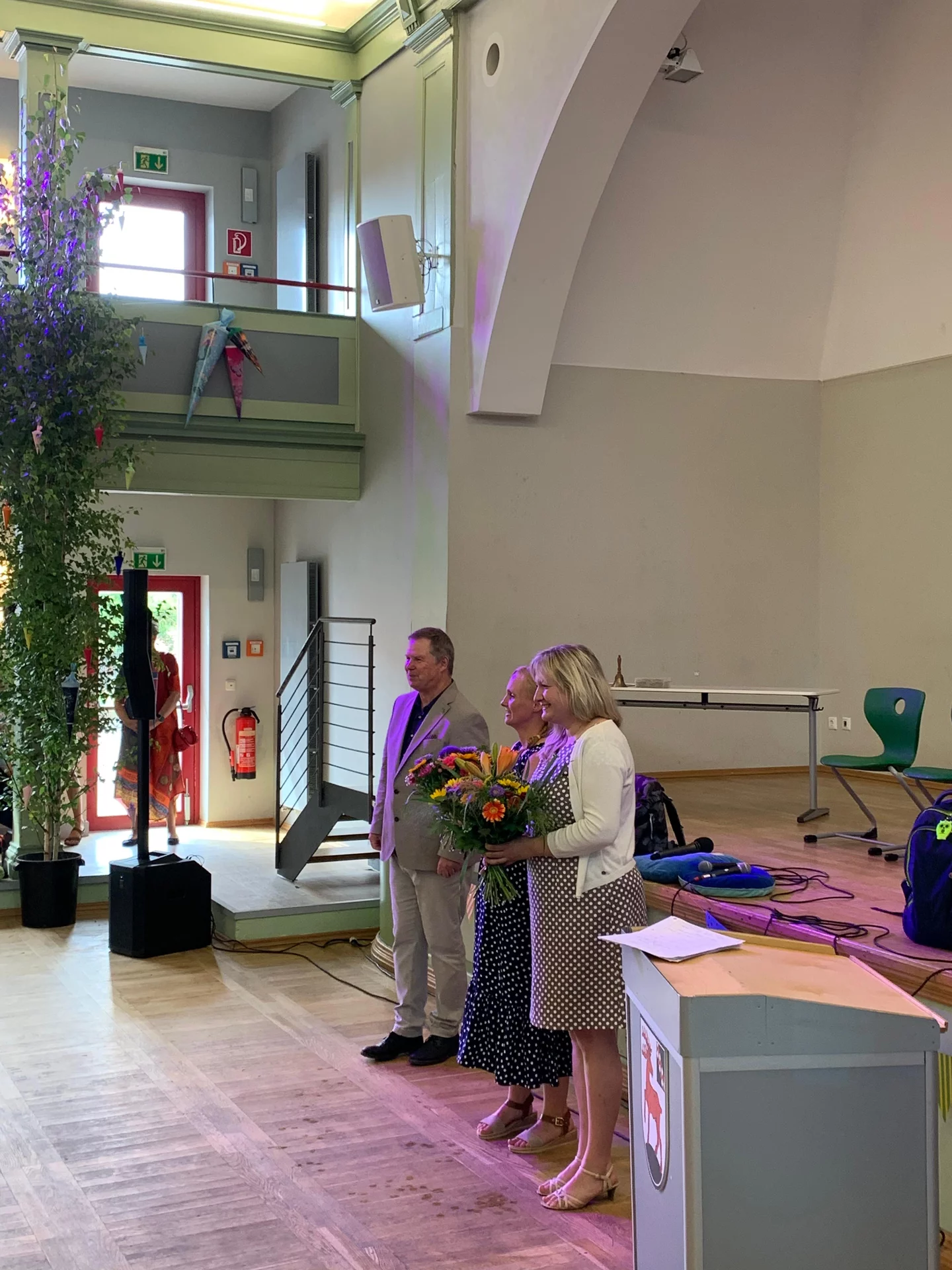 Vielen Dank an alle Helferinnen und Helfer, die den Saal mit Stühlen ausgestattet, ihn geschmückt, die Technik bedient und vor und hinter den Kulissen für eine schöne und festliche Feier gesorgt haben.