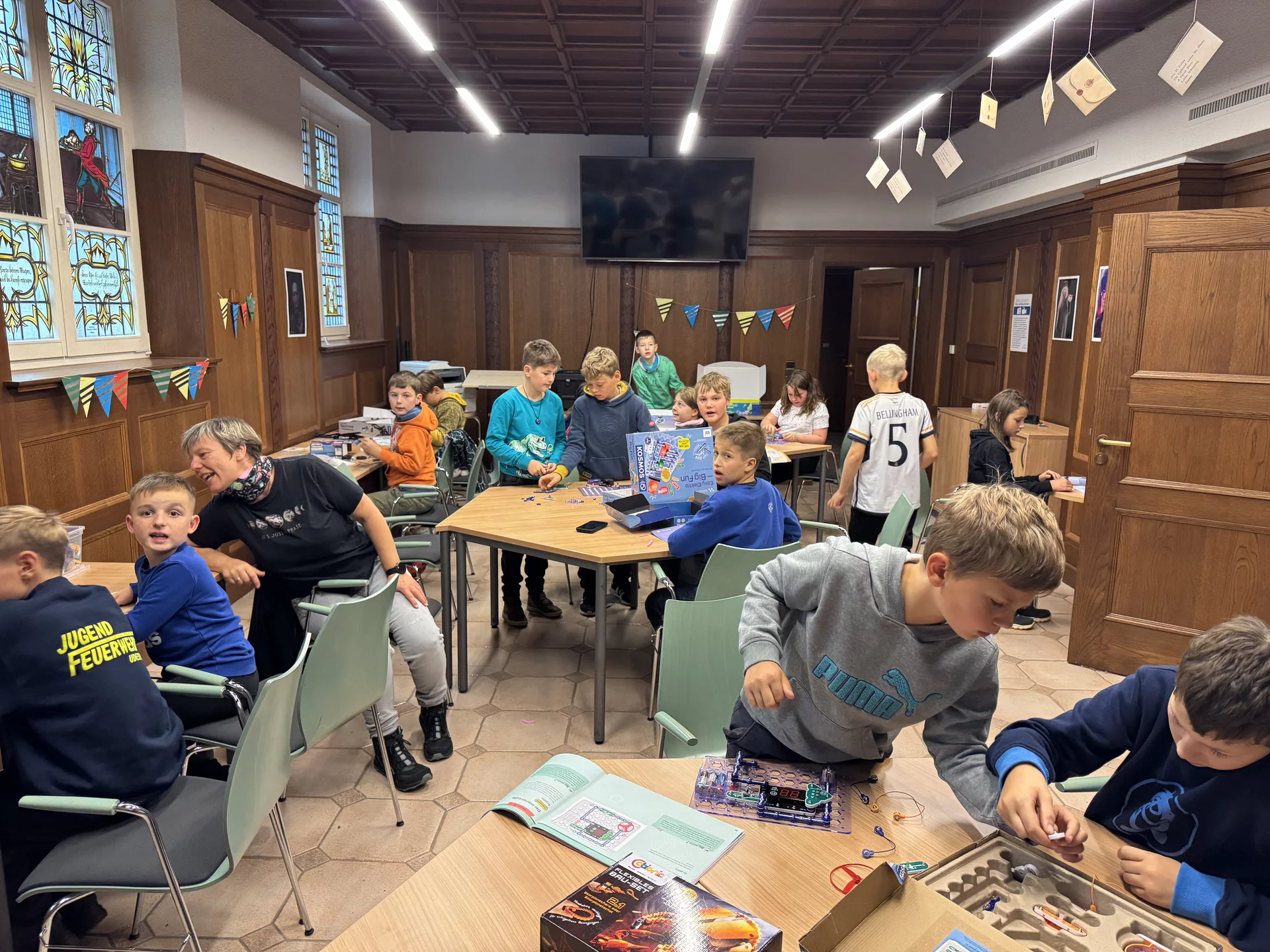 Donnerstag reisten wir nach Suhl und erkundeten dort die Sternwarte. Am Nachmittag besuchten wir den Technikraum der Bibliothek von Zella-Mehlis. Die Kinder hatten viel Zeit um zu experimentieren und verschiedene Technikkästen auszuprobieren. Wie jeden Tag wurden wir mit sehr leckerem Essen verwöhnt. Am Freitag noch eine kleine historische Stadtrundführung und dann traten wir gemeinsam die Heimreise an.