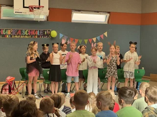 Im Rahmen der Feier wurden auch Auszeichnungen für Kinder verliehen, die im Schuljahr herausragende Leistungen erbracht hatten. Für die beiden vierten Klassen war dieser Moment besonders emotional: Es war der letzte gemeinsame Auftritt, das Ende einer wichtigen Schulzeit. Die Schülerinnen und Schüler präsentierten stolz ein Programm, das sie eigens vorbereitet hatten, und sorgten so für einen festlichen Rahmen.