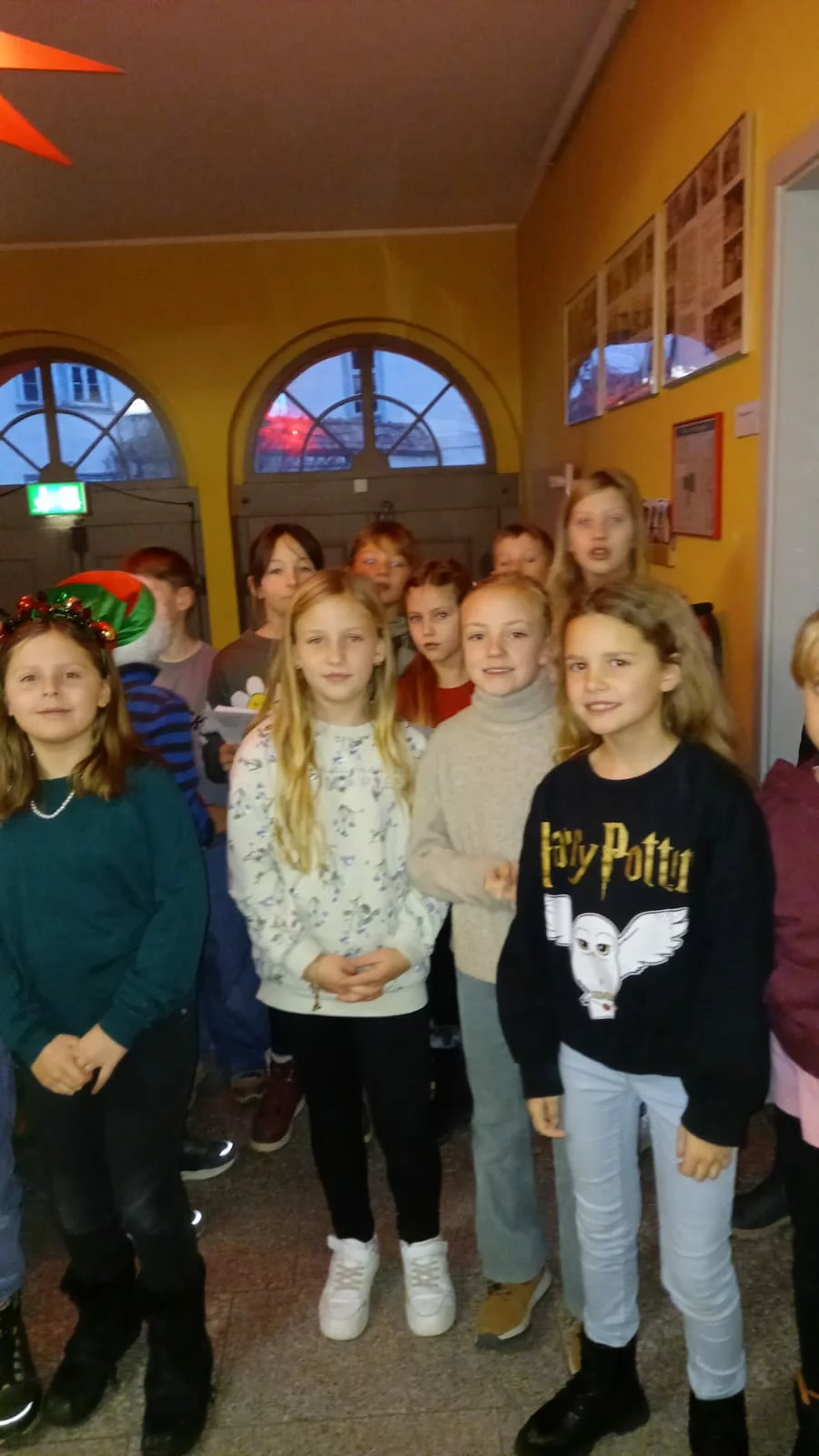 Die Weihnachtsfeier der Klasse 4b war ein rundum gelungenes und sehr stimmungsvolles Ereignis. Der Tag begann mit dem gemeinsamen Adventssingen der gesamten Schule im Foyer. In festlicher Atmosphäre wurden bekannte Weihnachtslieder gesungen und alle kamen gemeinsam auf die bevorstehenden Feiertage eingestimmt.