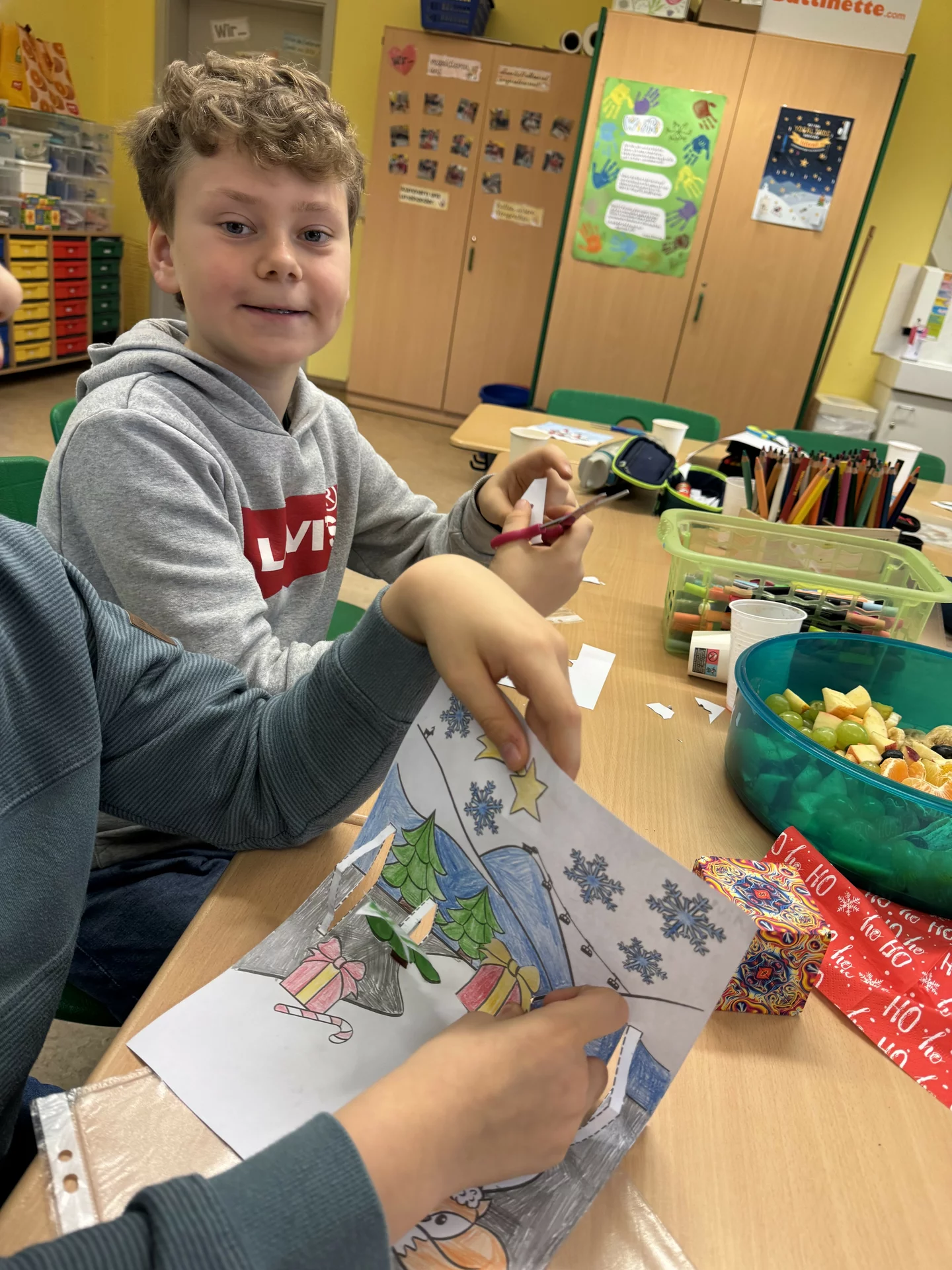 Zum Abschluss der Feier wurde noch gemeinsam gebastelt und gesungen, bevor sich alle Kinder glücklich und erfüllt in die wohlverdienten Weihnachtsferien verabschiedeten.