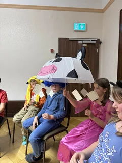 Besonders beliebt waren die Mitmachteile – es wurde kräftig gesungen, geklatscht und gelacht. Zwei Kinder erhielten sogar die besondere Gelegenheit, auf die Bühne zu kommen und direkt am Geschehen mitzuwirken.